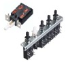 KDC-A11 push button switch, double poles single throw,PCB type for the terminals connection. Rated Value: UL, C-UL approved: TV-4, 120Vac; VDE approved: 8A/128A, 250Vac.It can be used in Color TV or other electronic equipment. KDC-A08-5-5P push button switch set, double polesdouble throw, PCB type for the terminals connection. Rated Value: VDE approved: 8(2)A, 250Vac.The distance between the switches are 17.5mm.